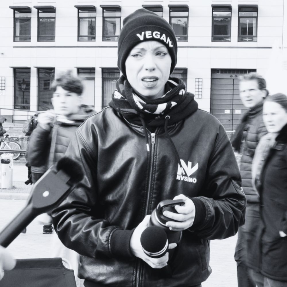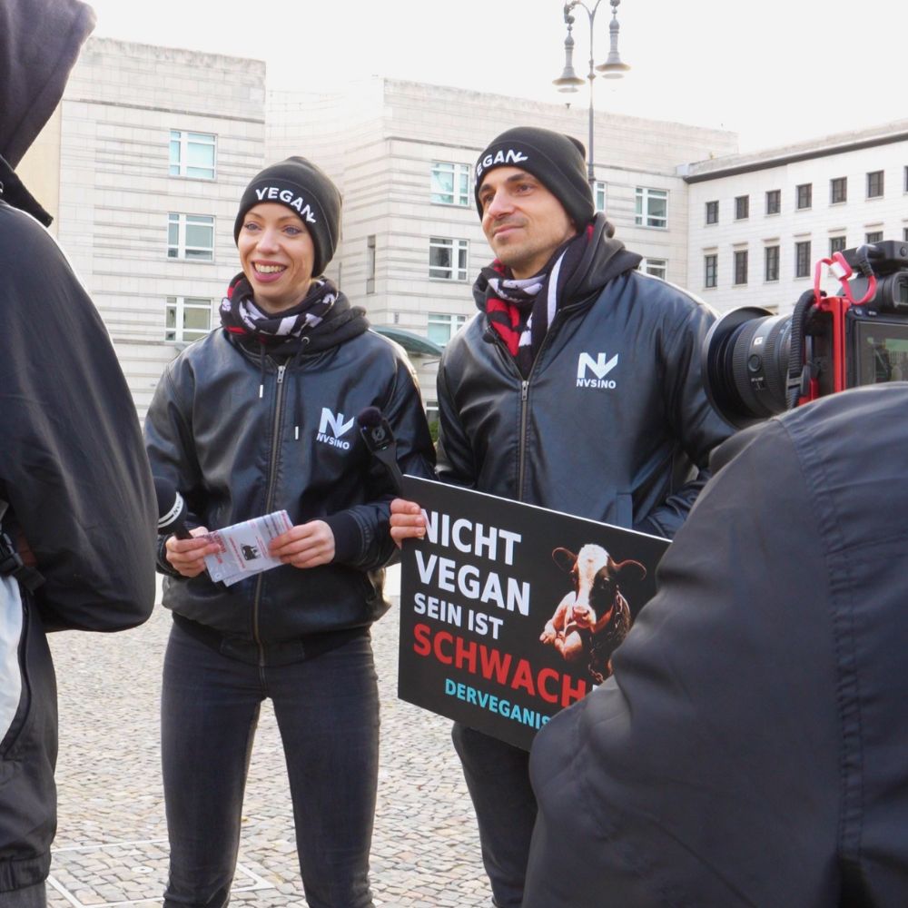 Wir machen Aktionen und viralen Content, der den Mainstream unterhält, wachrüttelt und dazu bringt, Veganismus als neue Norm zu begreifen. Die Effektivität unserer NVSINO-Straßendemos liegt in zwei Aspekten: